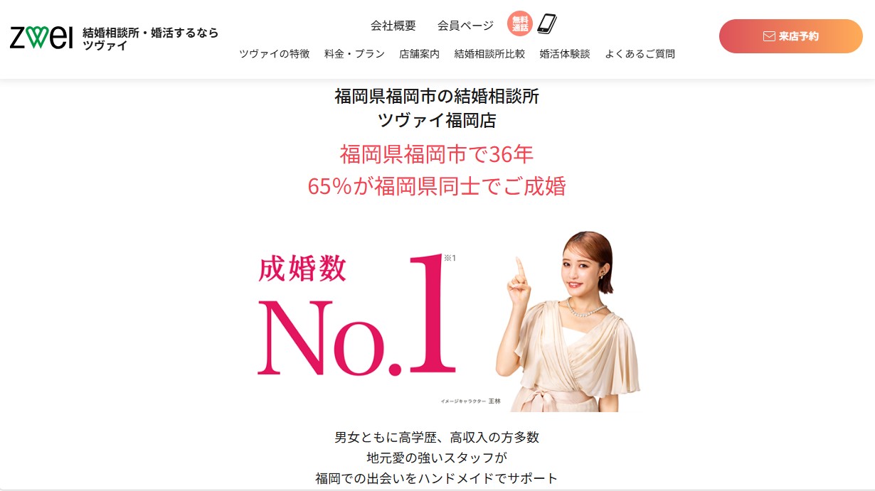 全国規模を誇るツヴァイですが、ツヴァイ福岡店では成婚者の内の約6割半が地元婚を実現させています。